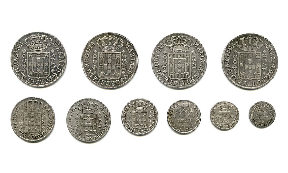 Cruzado novo 1795, 1798, 1793, 1797 (17.05,17.10,18.03,18.07); Doze Vinténs 1798, 1799 (15.05,15.07); Seis Vinténs (14.01); Tostão EH (12.01); Três Vinténs (08.01); Meio Tostão (06.01)