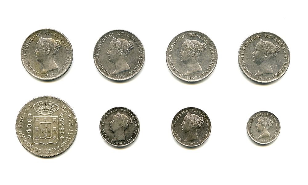 Cruzado novo 1835 (16.03) lindo MBC; 500 Reis 1842 (39.05) lindo MBC, 1845 (39.08) lindo MBC, 1849 (39.12) lindo MBC, 1853 (39.16) MBC+; 200 Reis 1838 (38.02) BC+, 1843 (38.04) MBC+; 100 Reis 1853 (37.01) MBC