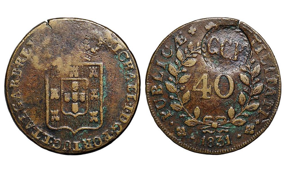 Carimbo “GCP” sobre Pataco 1831 D. Miguel I BC/BC+