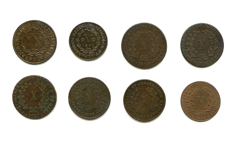 X Reis 1830 Londres (BELA) e V Reis 1830 Londres (MBC+); 1835 (10.01), 1837 (10.03), 1836 (11.02), 1837 (11.05), 1837 (12.02), 1838 (12.03), 1839 (12.04); V Reis 1836 (09.01) BELA; XX Reis 1847, 1848, 1849, 1850, 18