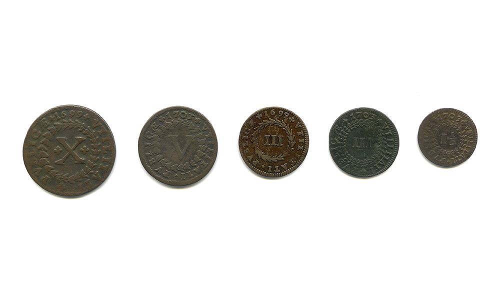 X Reis 1699 (16.01) BC; 1703 (17.07) BC+; 1703 PVBLICAE (15.07) BC+; V Reis 1699 (11.02) BC; 1699 (13.01) BC; 1703 (13.10) BC+; III Reis 1699 (05.01) MBC; 1699 (05.02) BC/BC+; 1699 EV (05.07) MBC; 1703 (09.02) BC+; 1 1/2 Reis 1699 marquilha invertida (01.08) BC+; 1703 (03.01) BC+