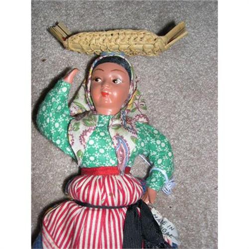 <table width="100%" border="0" cellspacing="0" cellpadding="4"><tr><td><em> Portugese woman and fish</em></td></tr><tr> <td width="100%"> This 8" doll is adorable. She has a tag sewn to her apron that says Made in Portugal. She is made of some type of pottery or clay. She is very colorful with her different materials in her attire. She is a market woman with fish on her head in the basket. The fish are made of red felt. She has slipper type shoes but the soles are missing. She has a couple of little brown smudges on the front of her aporn. She has alip and pantaloons. She has painted features with the red dots in the eyes and nostrils. She's a well made doll. She is from a smoke free environment. Buyer to pay $8.00 for U.S. shipping, insurance, and handling. </td></tr><tr> <td> </td></tr><tr> <td>Reference #: Oth1</td></tr><tr><td>Condition:Excellent</td></tr><tr><td>Year:unsure</td></tr><tr><td>Country:U.S.A.</td></tr><tr><td>Maker:Made in Portugual</td></tr><tr><td>Height:8</td></tr><tr><td>Title:Portugal Fish Woman tagged</td></tr><tr><td>Style:international native attire</td></tr><tr><td>Materials:pottery</td></tr><tr><td>Type:native attire</td></tr><tr><td>Location:Neapolis, OH</td></tr></table>
