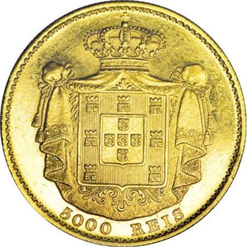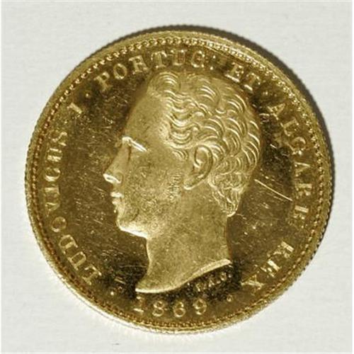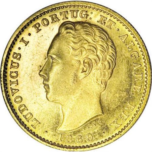 Portugal Luiz I gold 5000 Reis 1869, KM516,