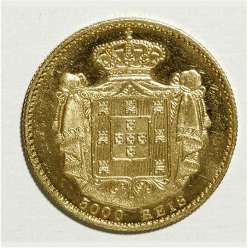 <B>Luiz I gold 5000 Reis 1869,</B></I> KM516, prooflike UNC, fully mirrored surfaces and a cameo bust, noticeable handling, particularly in the obverse fields.<BR><BR><b>Shipping:</b> Coins & Currency (<a target="_blank" href="http://www.heritageauctions.com/common/shipping.php">view shipping information</a>)