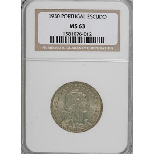 <B>Republic 1 Escudo 1930,</B></I> KM-578, MS63 NGC, nice piece with somewhat darker nickel-gray surfaces, the key date in this series with a Krause value in Unc. of $1,000.<BR><BR><b>Shipping:</b> Coins & Currency (<a target="_blank" href="http://www.heritageauctions.com/common/shipping.php">view shipping information</a>)