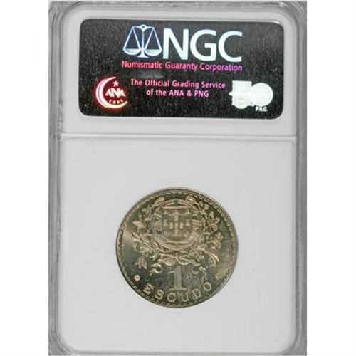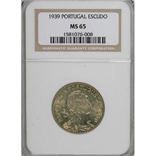 <B>Republic 1 Escudo 1939,</B></I> KM-578, MS65 NGC, bold strike, a beautiful coin with booming nickel color. Another important date, and in wonderful condition!<BR><BR><b>Shipping:</b> Coins & Currency (<a target="_blank" href="http://www.heritageauctions.com/common/shipping.php">view shipping information</a>)