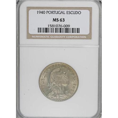 <B>Republic 1 Escudo 1940,</B></I> KM-578, MS63 NGC, an attractive piece.<BR><BR><b>Shipping:</b> Coins & Currency (<a target="_blank" href="http://www.heritageauctions.com/common/shipping.php">view shipping information</a>)