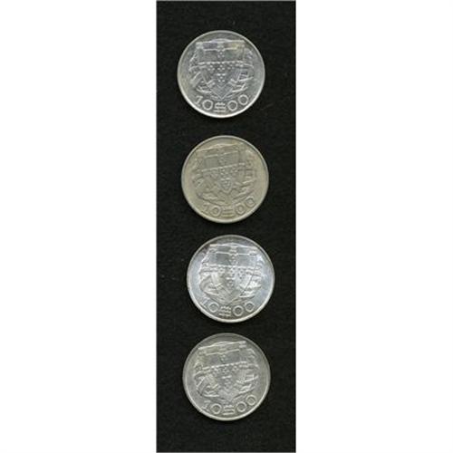 <B>Republic 10 Escudos lot,</B></I> KM-582, as follows: 1932 XF, 1934 VF, 1940 frosty BU, and 1948 Choice AU. Scarce pieces.<BR><BR><b>Shipping:</b> Coins & Currency (<a target="_blank" href="http://www.heritageauctions.com/common/shipping.php">view shipping information</a>)
