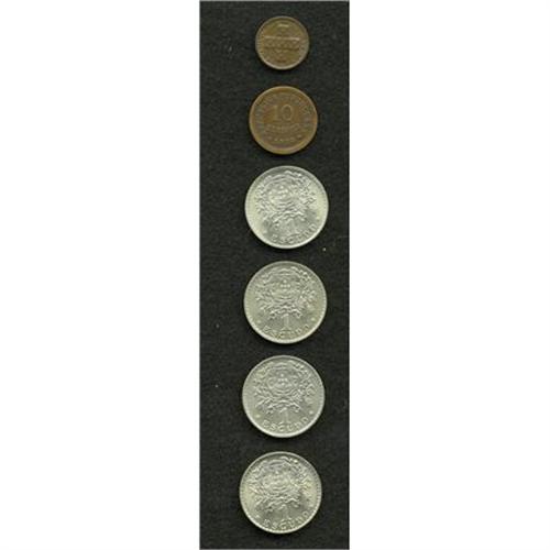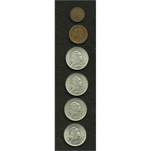 <B>Republic. Well-preserved minors:</B></I> 10 Centavos 1930, KM-573, key date, pleasing brown XF, 10 Centavos 1948, KM-583, key date in superb grade, Choice brown Uncirculated, Escudo 1927, KM-578, Unc., Escudo 1945 Unc., Escudo 1946 Unc, Escudo 1952 Choice lustrous Unc. -- here indeed is a pleasing lot of scarce coins.<BR><BR><b>Shipping:</b> Coins & Currency (<a target="_blank" href="http://www.heritageauctions.com/common/shipping.php">view shipping information</a>)