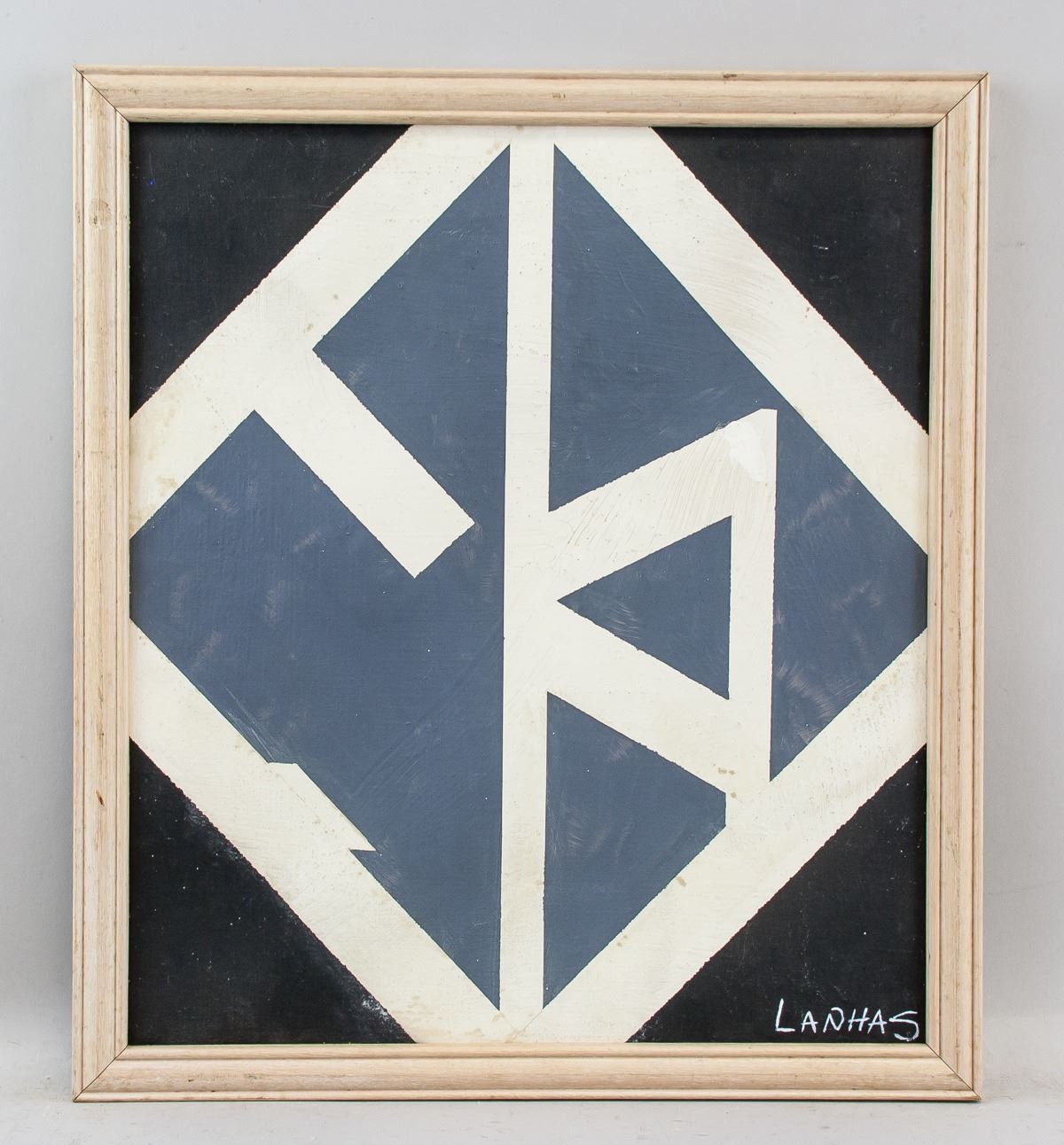 Oil on canvas. Featuring abstract expressionist composition. Portuguese Abstract School, signed Lanhas, possible signature of Fernando Lanhas on the lower right corner. 40.5 x 35 cm (15.9 x 13.8 inches). PROVENANCE: Southern Ontario estate.