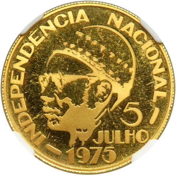 `Cape Verde. 2500 Escudos, 1976. Fr-1; KM-14. Weight 0.2315 ounce. Mintage 3,409. First Anniversary of Independence. Amilcar Lopes Cabral. NGC graded Proof 66 Ultra Cameo.