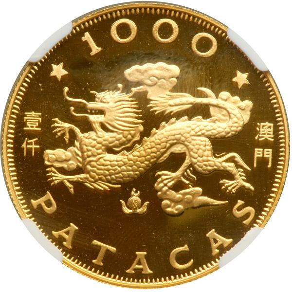 Portuguese Colonies - Macao. 1000 Patacas, 1988. KM-39. Weight 0.4710 ounce. Year of the Dragon. NGC graded Proof 69 Ultra Cameo.