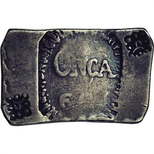 <B>Portuguese Colony. Silver Onca Bar 1843, </B></I>KM26.1, nice VF for this intriguing issue, bold counterstamps.<BR><BR><b>Shipping:</b> Coin/Currency (<a target="_blank" href="http://www.heritageauctions.com/common/shipping.php">view shipping information</a>)