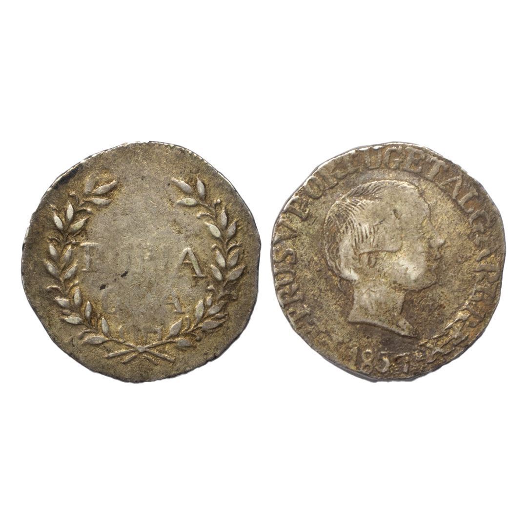 Portuguese India, Goa, D. Pedro V (1853-1861 AD), Silver Rupia, 10.94 gms, AD 1857. Obv: Portrait bust of D. Pedro V. Rev: value within sprays, KM # 279. Very fine+, Rare.