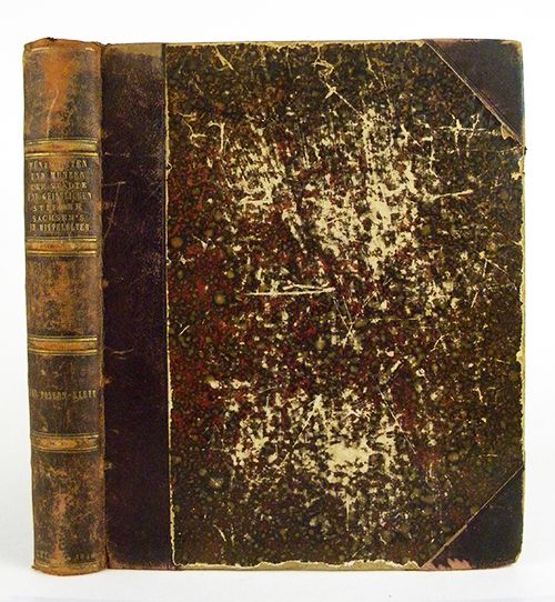 Posern-Klett, Carl Friedrich von. MÜNZSTÄTTEN UND MÜNZEN DER STÄDTE UND GEISTLICHEN STIFTER SACHSENS IM MITTELALTER. Leipzig: Druck von Wilh. Vogel, Sohn, 1846. 4to, contemporary brown half morocco and mottled boards; spine with four raised bands, ruled and lettered in gilt. x, (2), 386 pages; 46 attractive lithographic plates of coins. Binding worn, but sound. Very good. The rare and still important original edition of this classic work on the medieval coins of Saxony. Clain-Stefanelli 6711. Grierson 146.