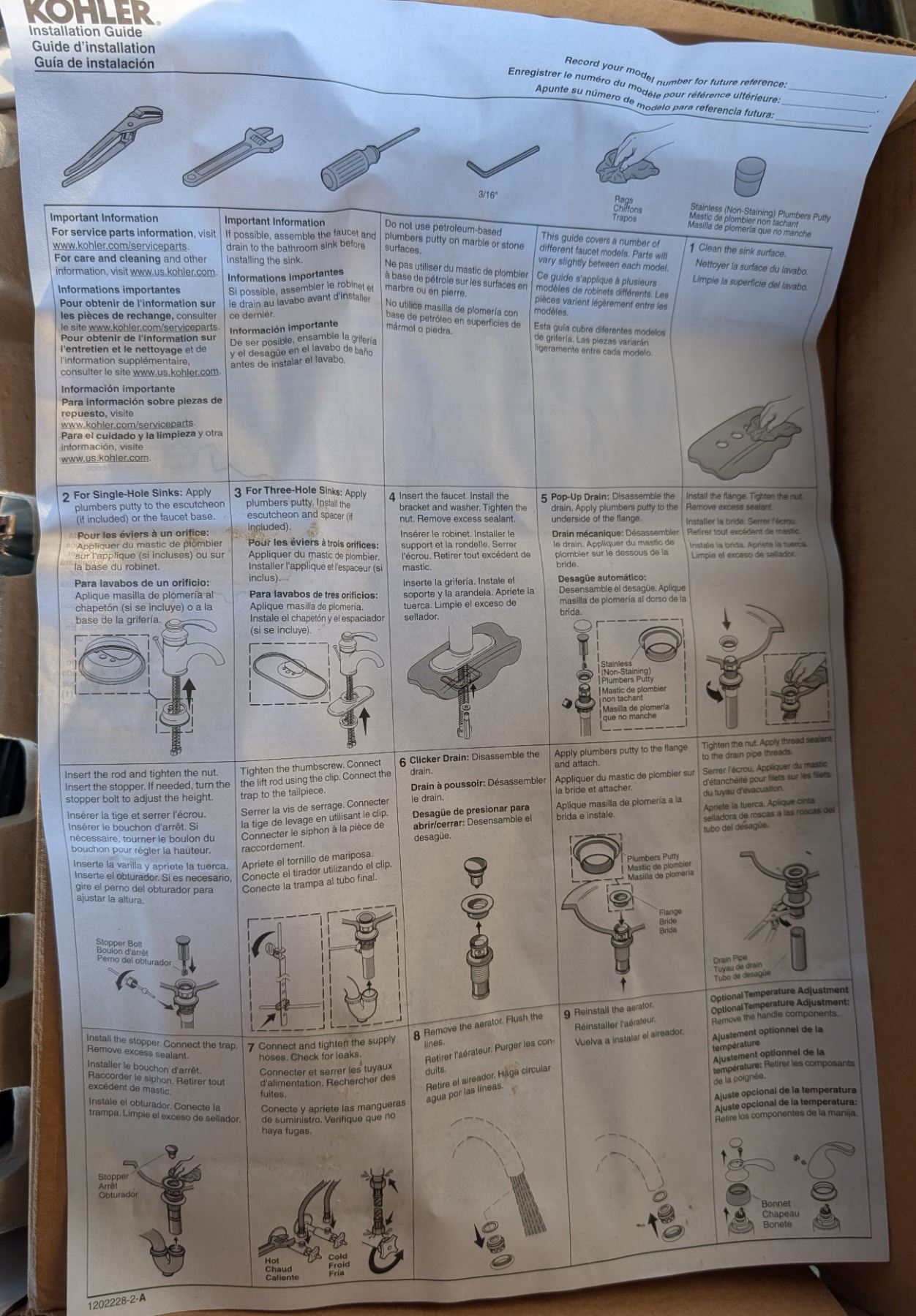 Possibly New KOHLER Faucet Bathroom Installation Bathroom Faucet w/ Manual and Original Box