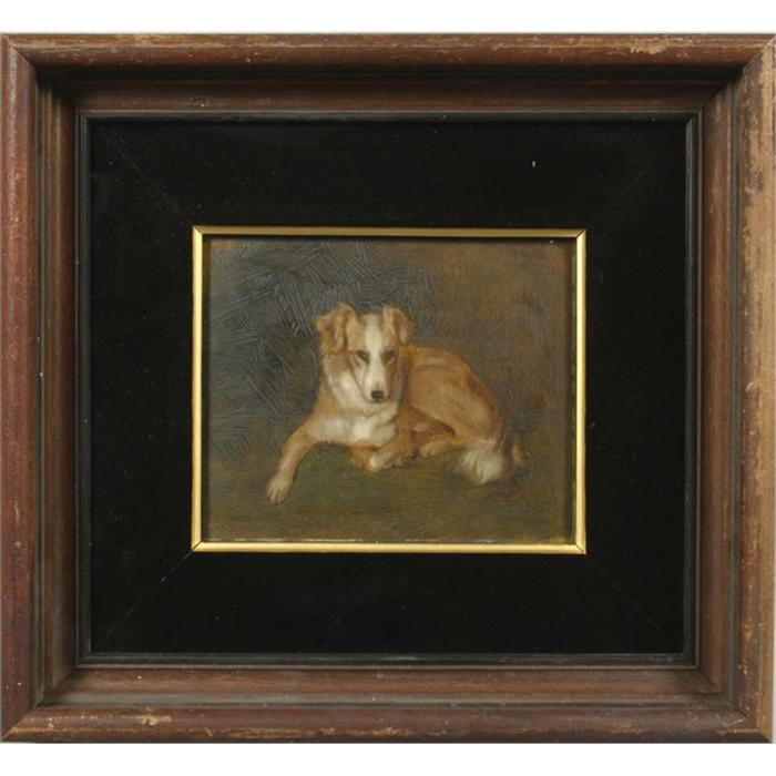 Possibly Sir David Wilke (Scottish, 1785-1841), painting of a dog, 18th-19th Century, o/b, 5 3/4" x 7", 13" x 14 1/4" framed.
