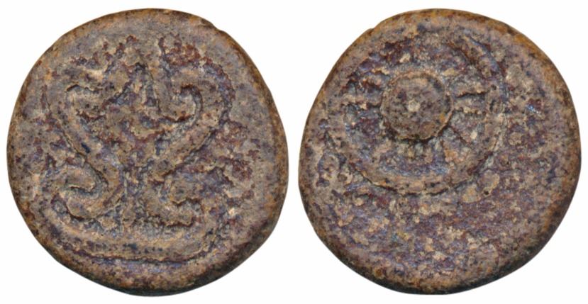 Post Gupta, Central India, Aulikaras of Mandasor, Lead Unit, 5.32g, obv. multi spoked wheel, rev. bold Ornate Shrivatsa symbol. Fine+, Rare.