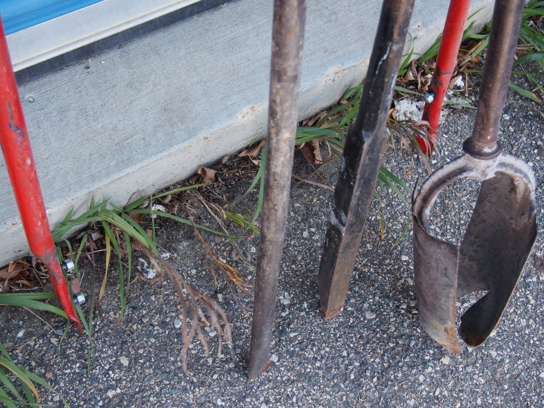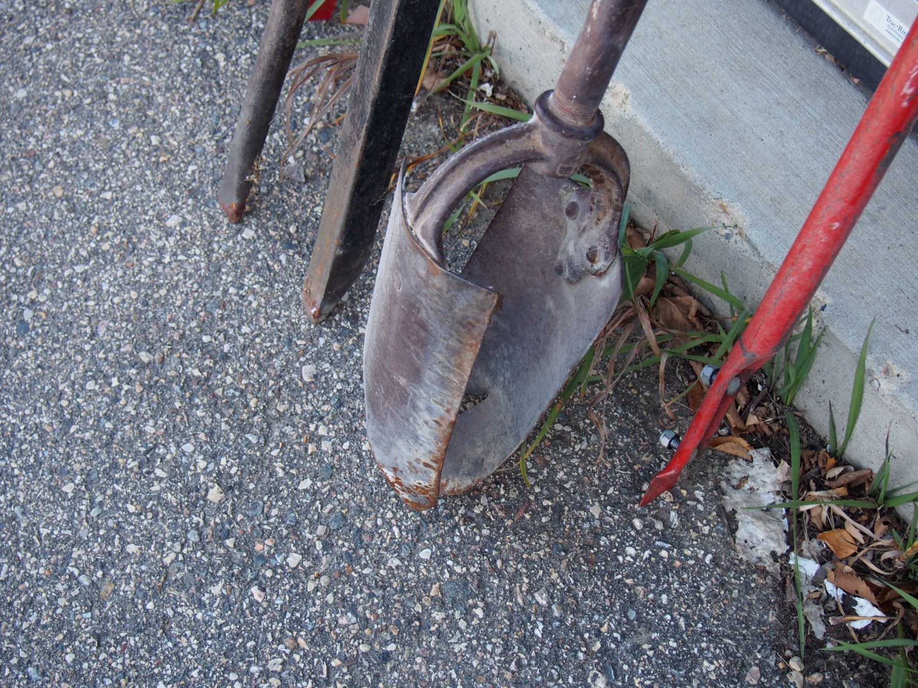Post Hole Auger (No Handle), 2 Metal Bars, Metal Handle, Scoop End and Sink
