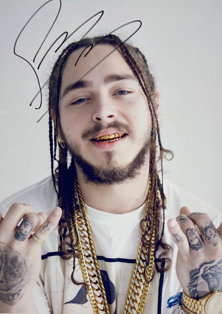 Post Malone facsimile signed photo. 8x10 inches. This item is a reprint of an original autograph