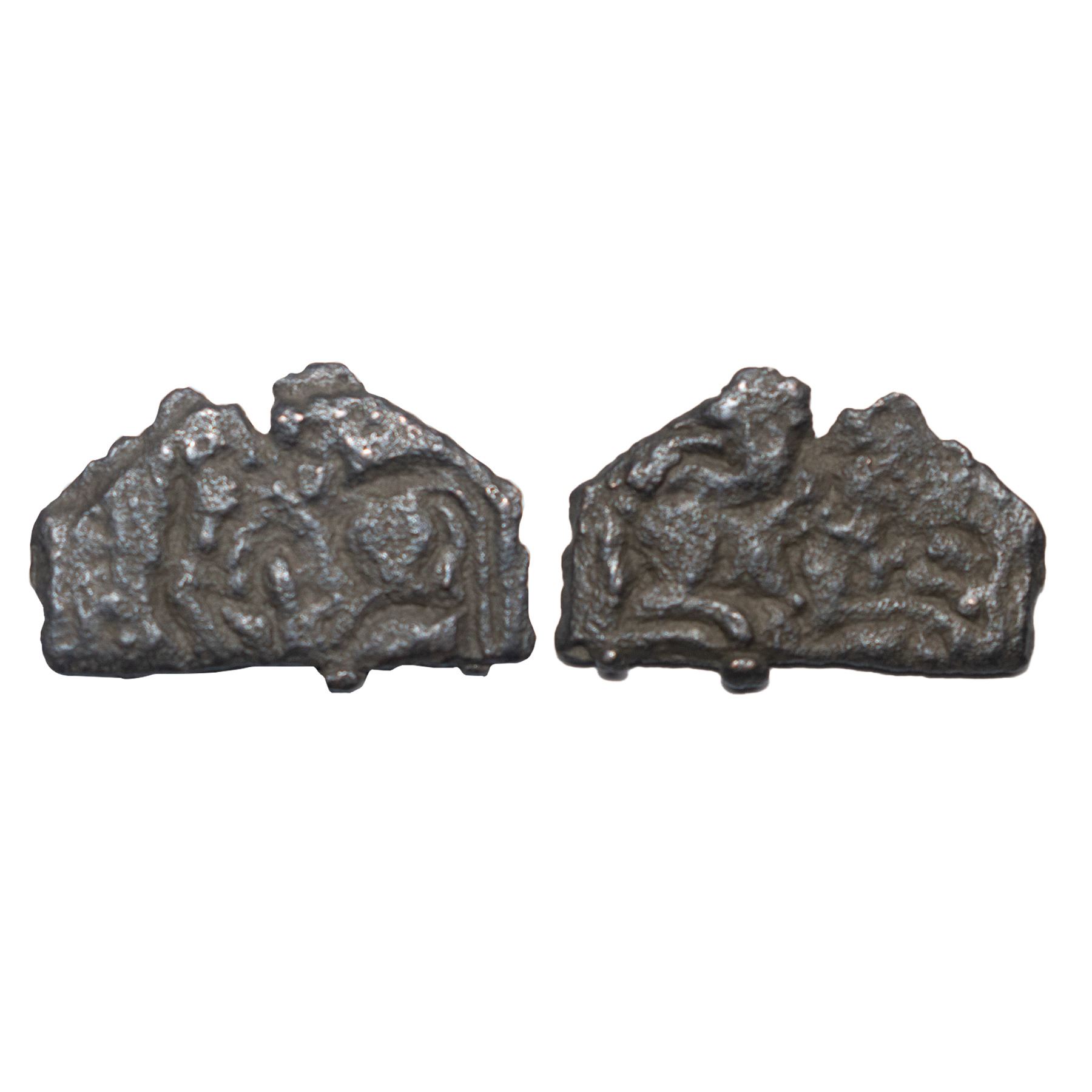 Post-Mauryan, Kaushambi Region, Uninscribed type, Casting Technique, Copper Unit, 1.30grms, Obv: Lion facing to right side, REV: Bull facing to left side. (Pieper # 1145). Very fine
