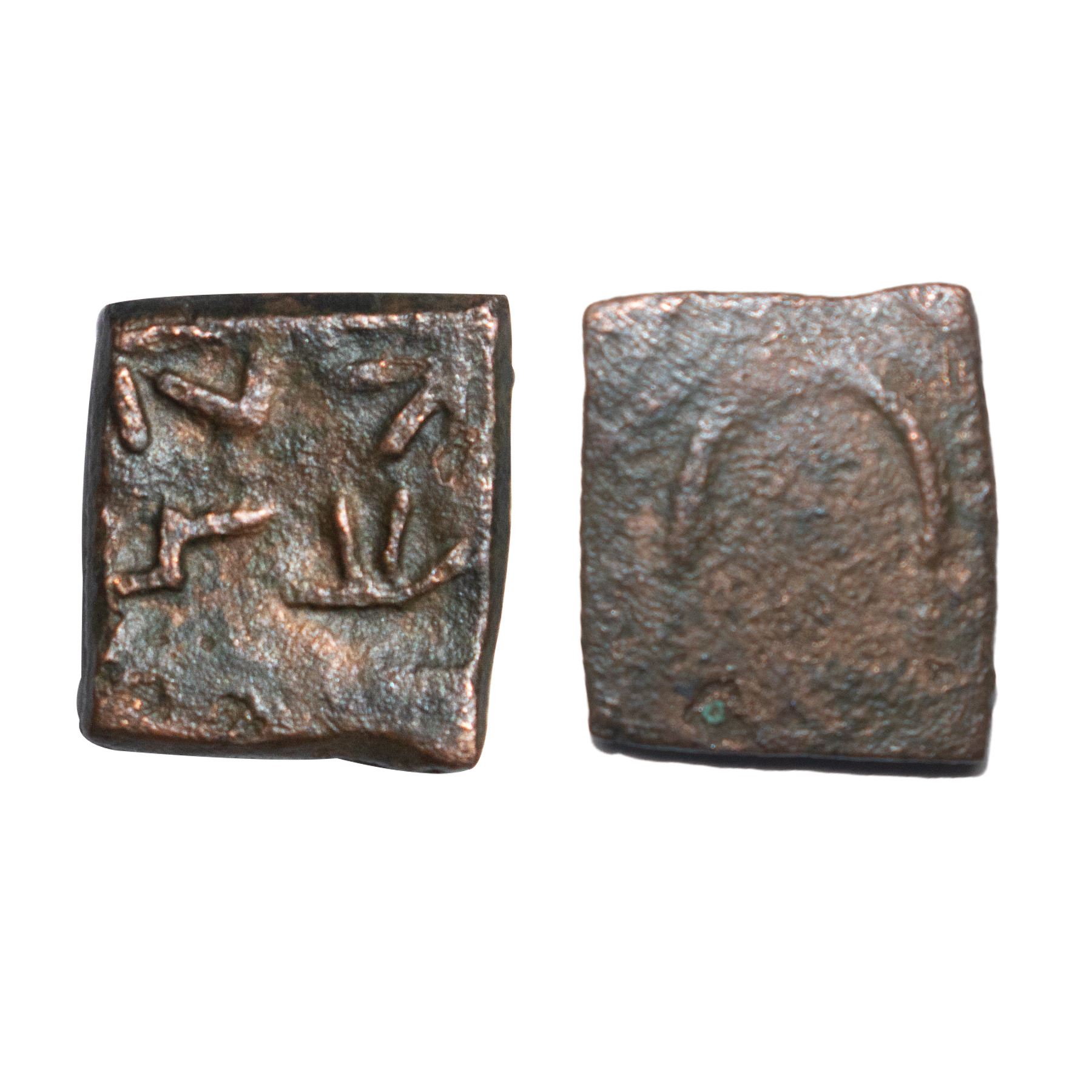 Post-Mautyan, Kaushambi region, Guild issue, Shosheniye , Copper Unit, 1.32grms, OBV: Brahmi legend ?Sho she ni ye?, REV: Large crescent symbol. (Pieper # 1134). Very fine