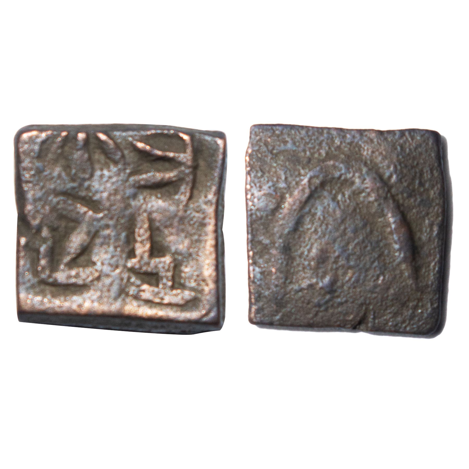 Post-Mautyan, Kaushambi region, Guild issue, Shosheniye, Copper Unit, 1.35grms, OBV: Brahmi legend ?Sho she ni ye?, REV: Large crescent symbol. (Pieper # 1134). Very fine