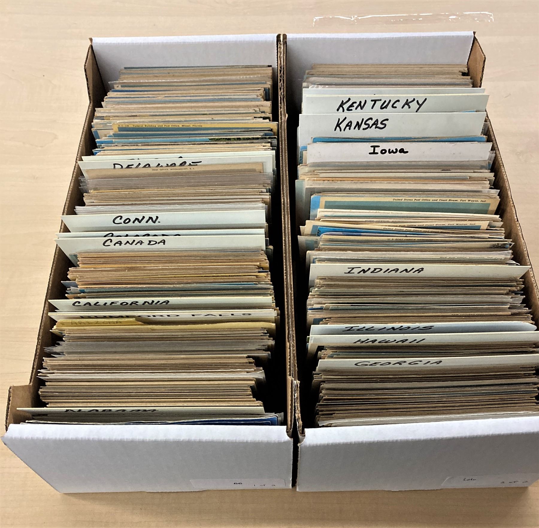 Post offices sorted Alabama to Maine. All early to standard size chrome. Approx. 1000 cards. Pictures shown are just a portion of the lot.