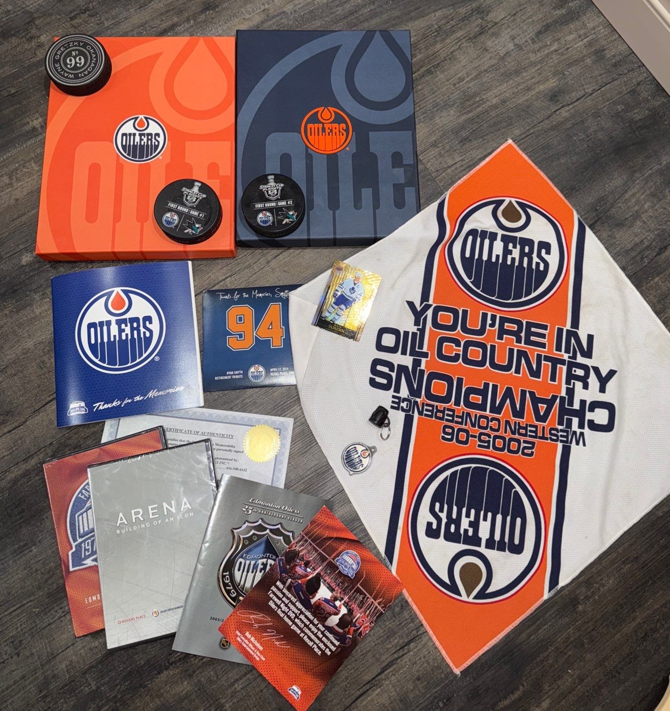 Post Season Ticket Collection w/ Hockey Pucks, Banner, Player Pamphlets & More