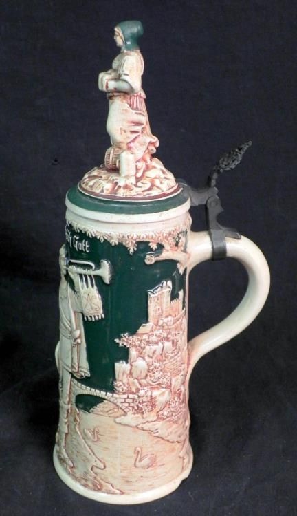 Available is this Post War German Beer Stein. It has a slight chip on the base, but otherwise is in great condition. It measures 12" tall and is marked Germany on the bottom.