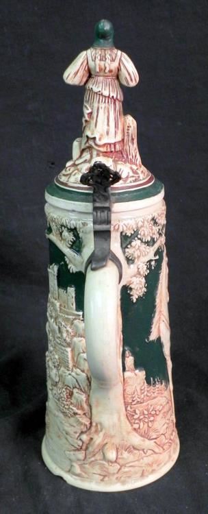 Available is this Post War German Beer Stein. It has a slight chip on the base, but otherwise is in great condition. It measures 12" tall and is marked Germany on the bottom.