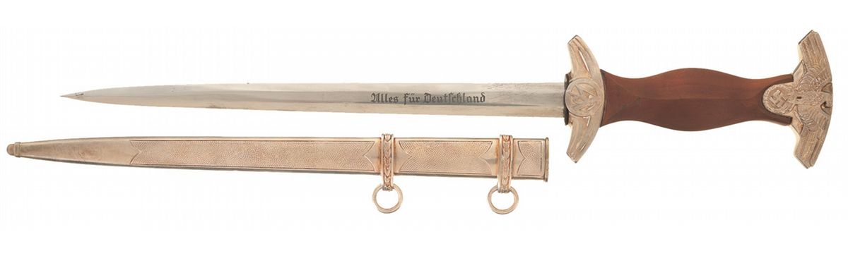 Manufactured by Eickhorn in the 1950s, Alles fur Deutschland etched blade, wooden handle and metal scabbard. Very good.