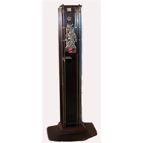 Postage Vendor.  This sleek postal machine enclosed in glass must be the most attractive postal machine in existence.  The inside appears to be a polished metal in terrific, like new condition.  This is a standout among vending machines. Circa 1920's.