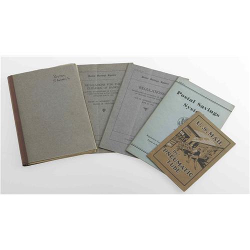 <B>Postal Savings System Booklets 1910, 1910, 1911.</B></I><BR>Three booklets of regulations for the Postal Savings System are found in this lot. Also included is a U.S. Mail by Pneumatic Tube booklet that was issued at the St. Louis World's Fair in 1904.
