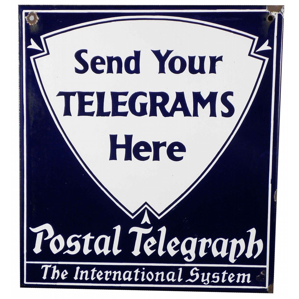 Postal Telegraph Porcelain 2 Sided Flange Sign. Paint loss at top two grommets otherwise very good condition. 14 X 15 1/2 inches.