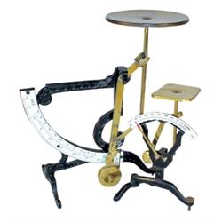 Postal scales (2), fancy CI & brass scales w/porcelain dials, both w/swivel feet & Ex. condition, 7"H & 11"H.