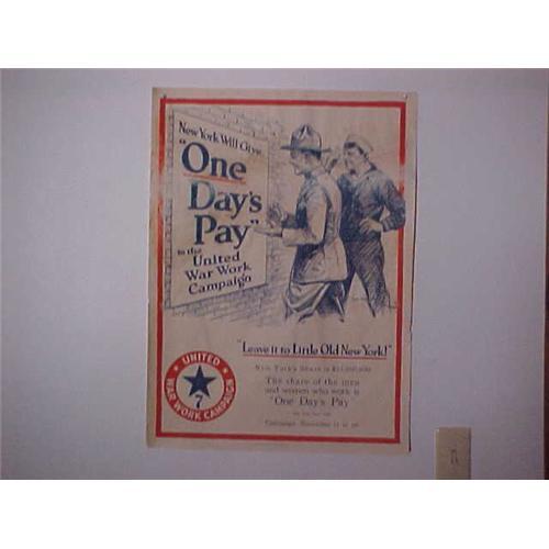Poster,WW1; 20 X 30;"title "Give One Day's Pay #1189039