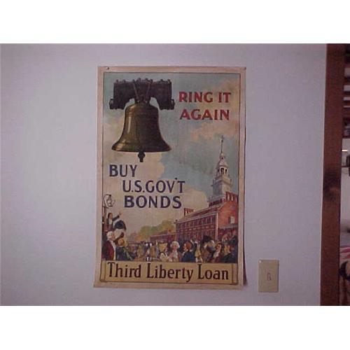 Poster, WW1; No. 8A; signed Sackett & Wilhelms Corp.N.Y. 20" X 30"; title "Ring It Again" Buy U.S. Gov't Bonds, Third Liberty loan