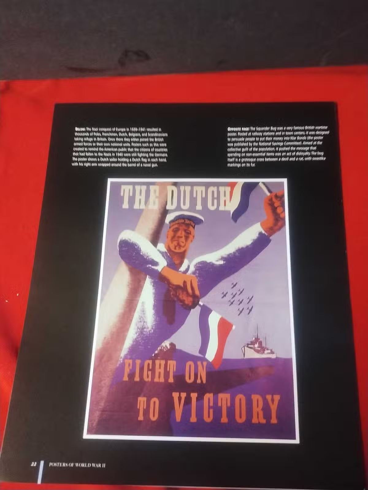 Various Mix of 10 ww2 posters that were displayed by various countries, some of the posters are doubled sided. They also came from a magazine by looks of it that some printed and enlarged, so there's descriptions about each poster, great for history collectors or history teaches to display, they are all in great shape.