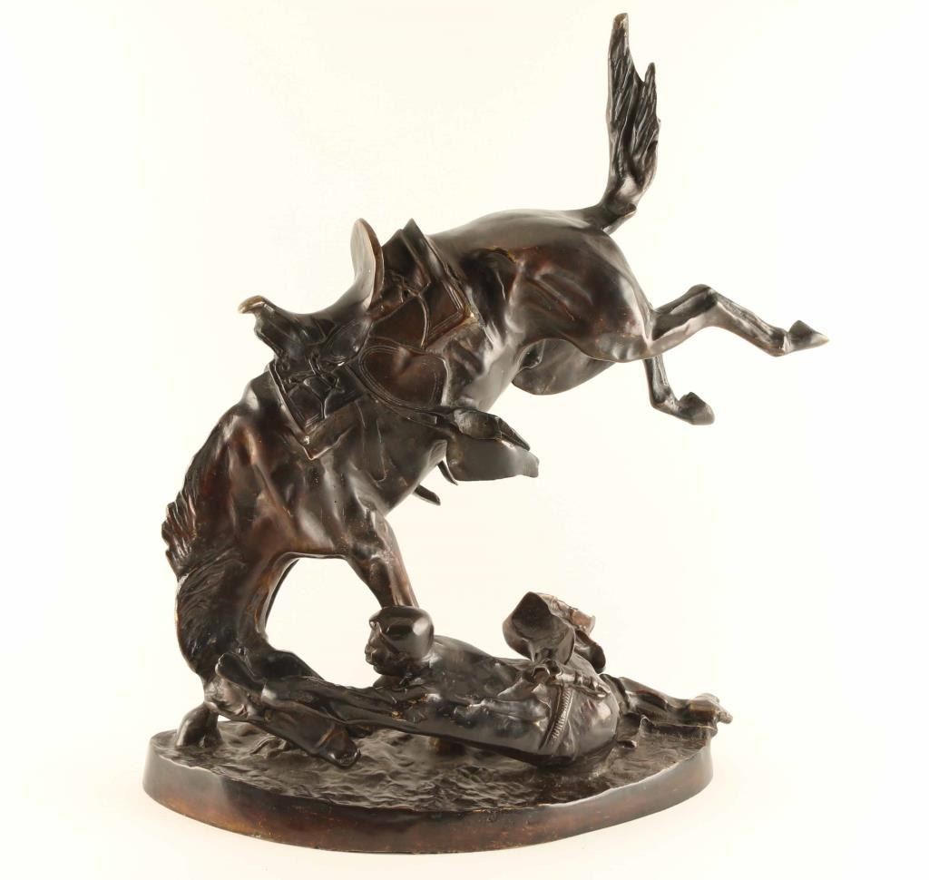 Titled "Wicked Pony" this bronze measures 22" tall, 17.5" at the base. Quality casting showing attention to detail. Mid-20th century.