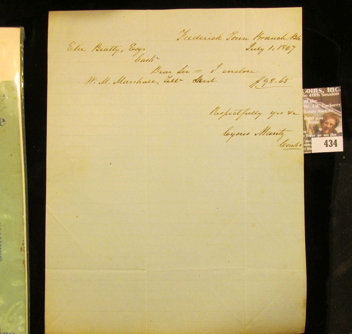 Postmarked Folded Letter from Frederick Town Branch Bank dated July 1, 1847; 1915 "American Combinat