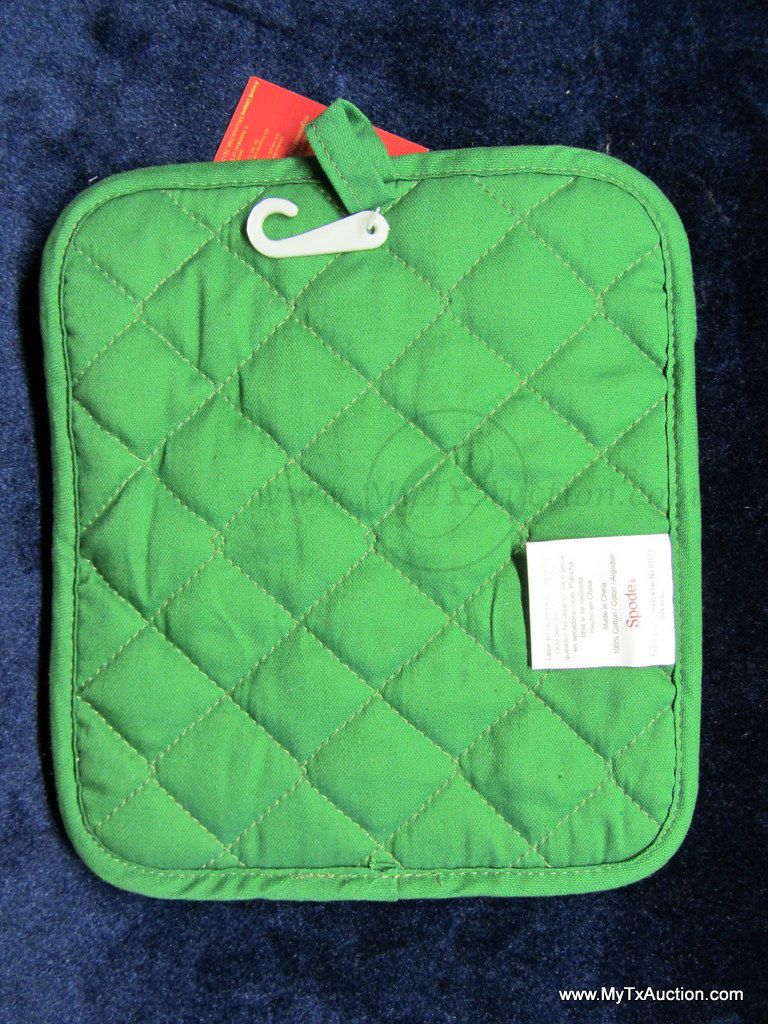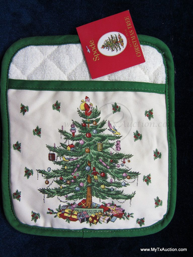 Kitchen pot holder is terry cloth lined, green quilted material on the pot side with Christmas tree on the decretive side.