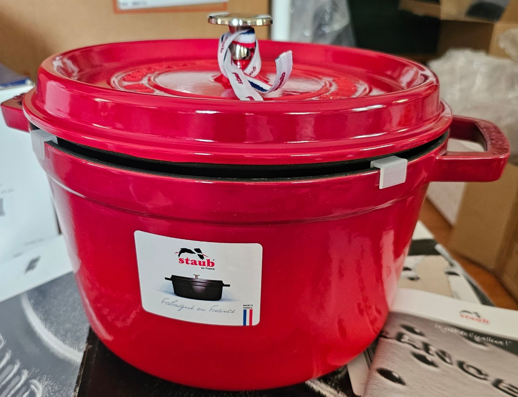 Staub Deep Round Cocotte, 24cm 5QT Pot, Color Cherry, Brand New