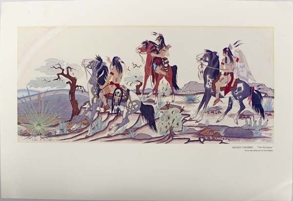 Native American Potawatomi Signed & Numbered Print ''The ''Rainbow'' by Woodrow Wilson ''Woody'' Crumbo (1912-1989), visual measures 5'' x 12'', this is from the 1943 painting, hand signed and numbered 254/475, ''From the collection of Jim Halsey'' printed on the bottom