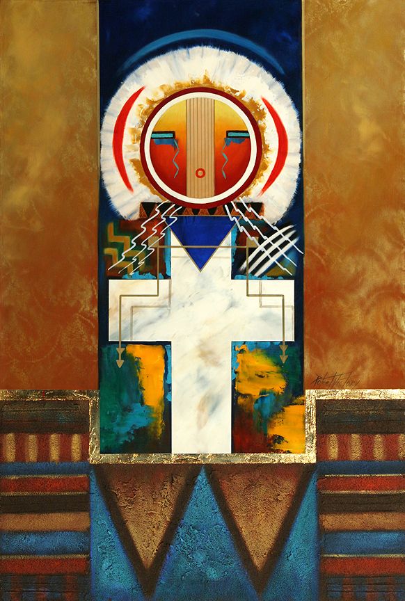 Poteet Victory (b. 1947). Thunder Spirit. 30" x 20" mixed media on canvas. Signed mid right: POTEET VICTORY. (est. $2,000-3,000). CONDITION REPORTS: www.auctioninsantafe.com/docs/cr2012.pdf