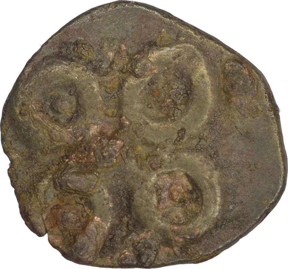 legend, '(si)va siri pulumavi(sa)', Rev: four orb ujjain symbol, 2.05g, 18.11mm,about extremely fine.