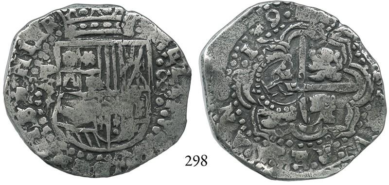 Potosí, Bolivia, cob 8 reales, 16(4)9O, with crowned L countermark on cross, choice. S-P35, KM-19b, CT-506. 27.1 grams. Bold full details all over, including crown and shield (assayer muddled), cross and countermark, and the 1 and the 9 of the date, no corrosion, nicely contrasting toning. Pedigreed to the Louis Hudson collection. Recovered from: Capitana (Jesús María de la Limpia Concepción), sunk in 1654 off Chanduy, Ecuador