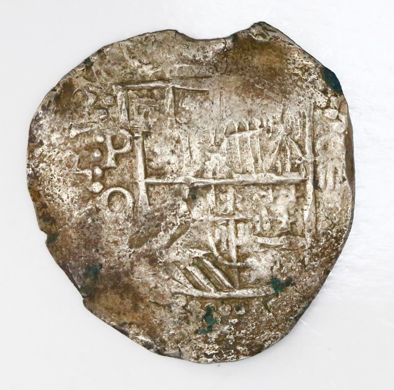 Potosi, Bolivia, cob 4 reales, Philip III, assayer Q. S-P17; KM-9; CT-243. 13.79 grams. Full shield and (slightly doubled) cross, clear P-Q, VF with spotty toning.