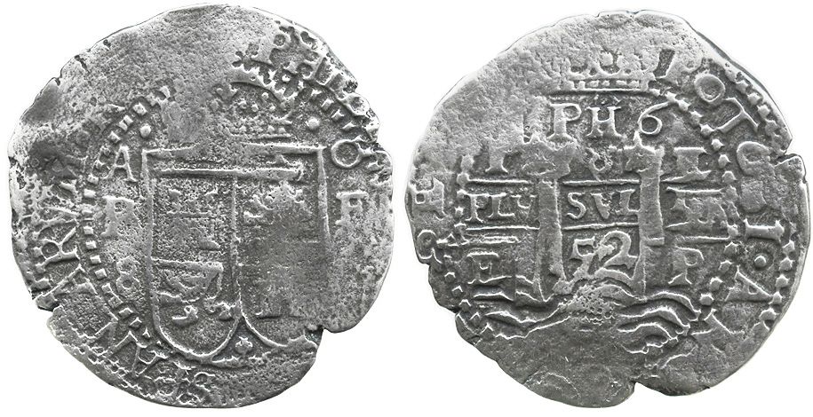 Potosi, Bolivia, cob 8 reales, 1652E transitional Type VIII/A.