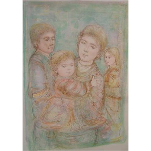 Potrait of a Family litho by Edna Hibel.. Does this magnifecent piece look like your family? Mother and 3 children 8 colors and gold